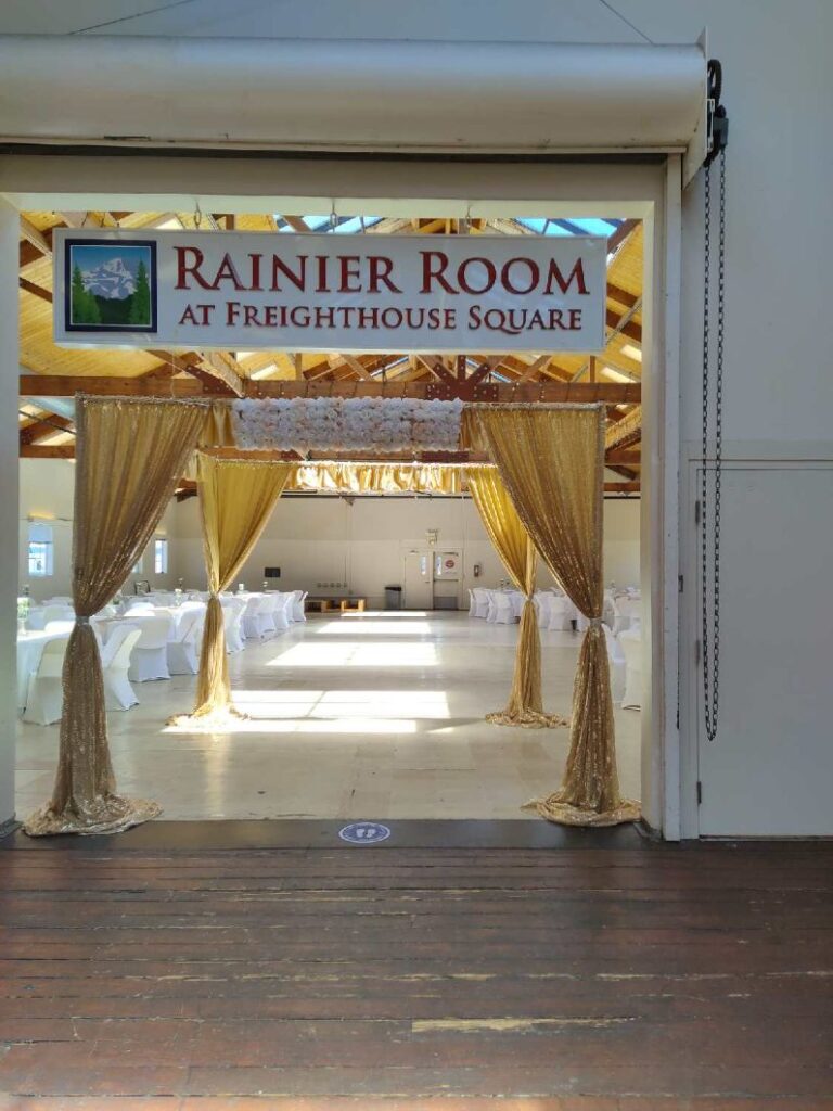 Welcome to the Rainier Room, a bright and beautiful event space nestled inside the historic Freighthouse Square — a century-old landmark in Tacoma that offers vintage charm with modern event comfort. Freighthouse Station Venues